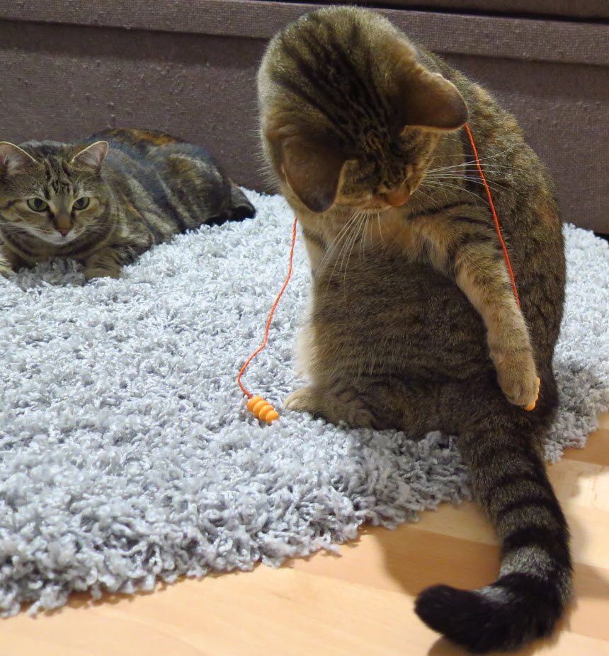 I put the ear plug carefully on the paw......ja vasta sitten heilauttaa.