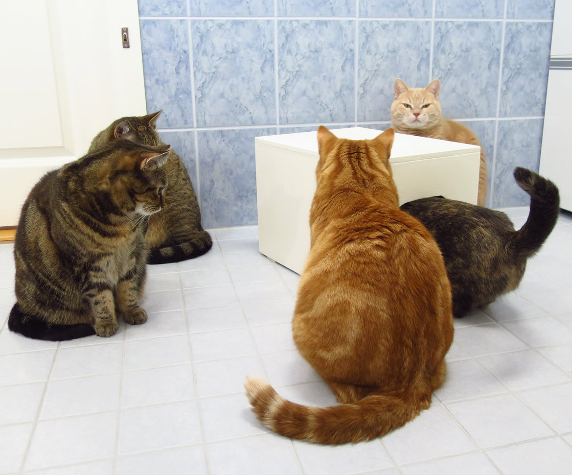 When Hanoi was a kitten, I managed to eat from the same opening...